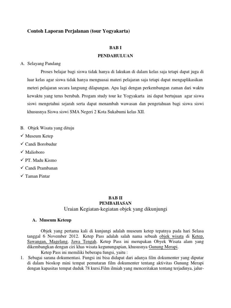 Contoh Laporan Perjalanan Wisata Untuk Smp - Seputar Laporan